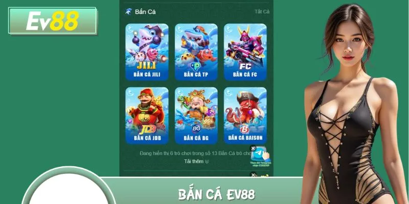 - Tích hợp nhiều nhà phát hành uy tín: Bắn cá EV88 liên kết trực tiếp với Jili, WG, KA,… giúp đảm bảo chất lượng ổn định.